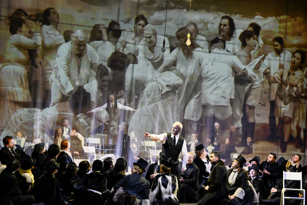 Mit den Proben begann man bereits 2019; durch Corona war die Arbeit beträchtlich eingeschränkt. Dazu kam der plötzliche Tod des Operndirektors und Chefdramaturgen K.W. Meyer am Ostersamstag 2023, der die Reihe „Focus33“ maßgeblich gefördert hatte; in dieser Serie sollten verschüttete oder verfemte Werke wiederbelebt werden. So auch Moses und Aron.