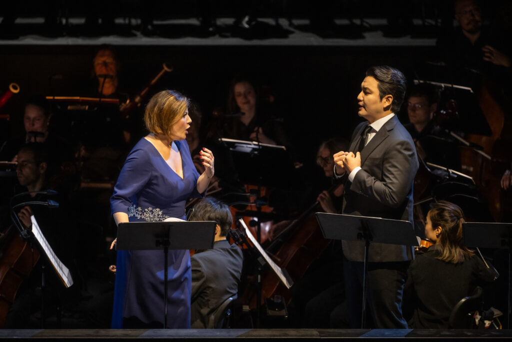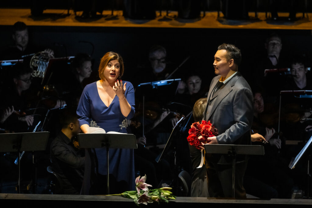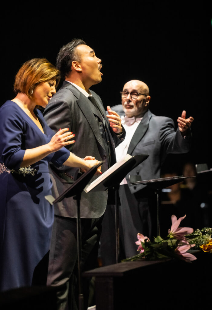 Entscheidender sind die exzellenten Gesangsleistungen des Ensembles; in Nachfolge des früheren „Fest der schönen Stimmen“, organisiert von den „Opernfreunden Köln“, hat auch diese Veranstaltungen alle hochgesteckten Erwartungen erfüllt. Vor allem zeigt sich der Effekt des Kölner Internationalen Opernstudios https://www.opernfreunde-koeln.de/, bei dem junge bereits ausgebildete Sänger und Sängerinnen ein musikalisches Upgrade erhalten durch weiteren Gesangsunterricht an der Hochschule, sprachliche und szenische Ausbildung sowie Live-Auftritte in der Kinderoper. Erfolgreiche Absolventen sind u.a. die beiden Koreaner Young Woo Kim und Insik Choi, seit Jahren fest im Ensemble. Und die jetzt das konzertante Opernerlebnis maßgeblich bereicherten. Young Woo Kim verfügt über einen „bärenstarken Tenor“, ausdrucksstark und problemlos bis in die höchsten Höhen. Seine unbändige Kraft sollte er vielleicht etwas sparsamer einsetzten. Hier ein Video über ihn: https://www.youtube.com/watch?v=yfdRSJ5IpYI